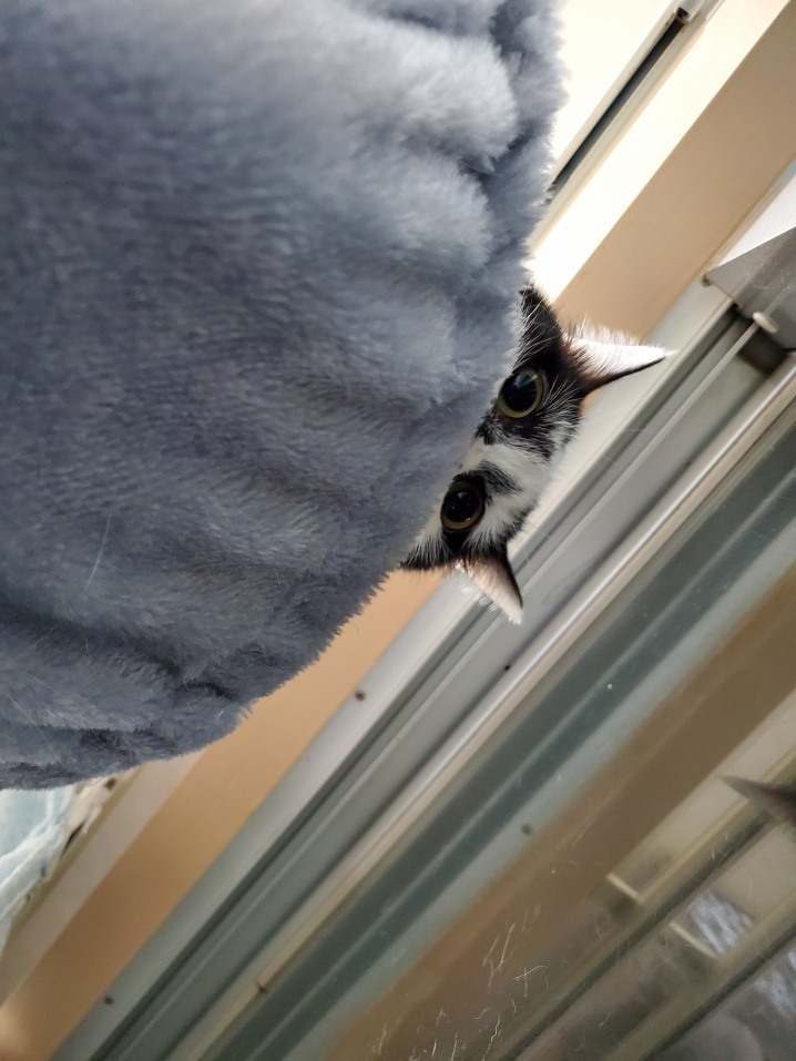 そして『暇なら遊んでよね~~!』といった感じで、キャットタワーから爆速で降りてきました(^∇^)